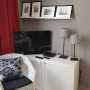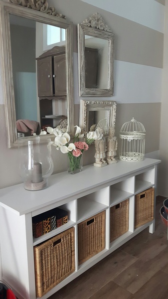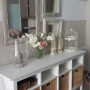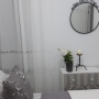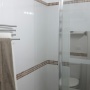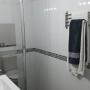 Shower, sink, shelves and toilet. Towels and hair dryer included.